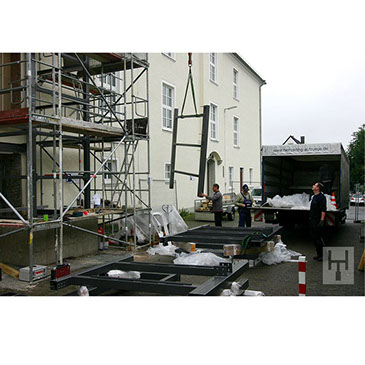 Anbau einer Aufzuganlage an ein bestehendes Gebäude
