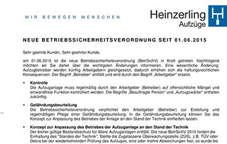 Die Betriebssicherheitsverordnung (BetrSichV 2015) fordert nach § 3 und 4 die Einhaltung des „Standes der Technik“ an allen Aufzuganlagen.