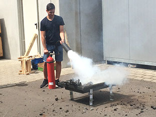 Am 08.07.2016 fand auf dem Betriebsgelände von Heinzerling Aufzüge eine theoretische und praktische Feuerlöschübung statt. Zuerst wurden wir durch unseren Kollegen und ehrenamtlichen Feuerwehrmann Christian über den richtigen Einsatz der Feuerlöschgeräte und die verschiedenen Brandklasseneinteilungen informiert. Danach nahmen alle Mitarbeiter an einer praktischen Löschübung teil.