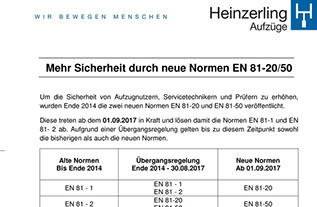 Hier finden Sie alle wichtigen Informationen über die neuen Normen EN 81-20 und EN 81-50. Wichtig für alle Kunden, die noch den Einbau einer Aufzuganlage nach den