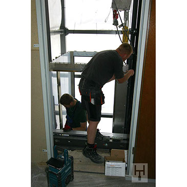 Bei der Planung einer Lastenaufzuganlage ist die spätere Nutzung entscheidend, insbesondere die Frage, ob die Anlage mit oder ohne Personenbeförderung konzipiert ist. Parameter wie Kabinenbreite, -tiefe und -höhe, Tragfähigkeit und Masse der Aufzugtüren, Kabinen- sowie Schachttüren und die Tragfähigkeit der Türschwellen dienen uns außerdem als Grundlage für erste Überlegungen. Bei dem Betrieb eines Staplers empfehlen wir zusätzliche Aufsetzvorrichtungen für die Aufzugkabine und den Sicherheitsvorschriften entsprechende Kabinentüren. Die Etagen erhalten wahlweise automatische Teleskoptüren (900-2.500 mm breit) nach DIN 18091 oder 1- bzw. 2-flügelige Drehtüren (900-2.500 mm breit) nach DIN 18090.