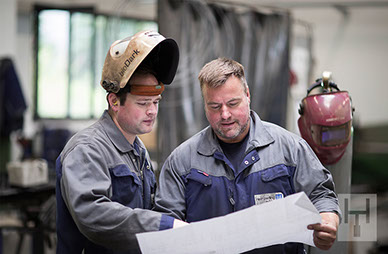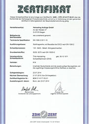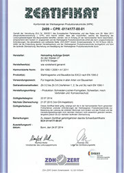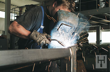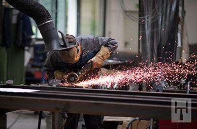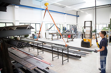 Anhand der in der Konstruktion erstellten 3D-Zeichnungen erfolgt nun die Fertigung der Aufzuganlage – teilweise im eigenen Haus. Die Heinzerling Aufzüge GmbH ist nach der EN 1090-1 zertifiziert und damit befähigt, tragende Stahlkonstruktionen bis EXC2 (Execution Class = Ausführungsklasse) zu bauen. Die einzelnen Fertigungsschritte, wie sägen, bohren, schweißen und die Oberflächenbehandlungen erfolgen streng im Rahmen der WPK (werkseigene Produktionskontrolle).